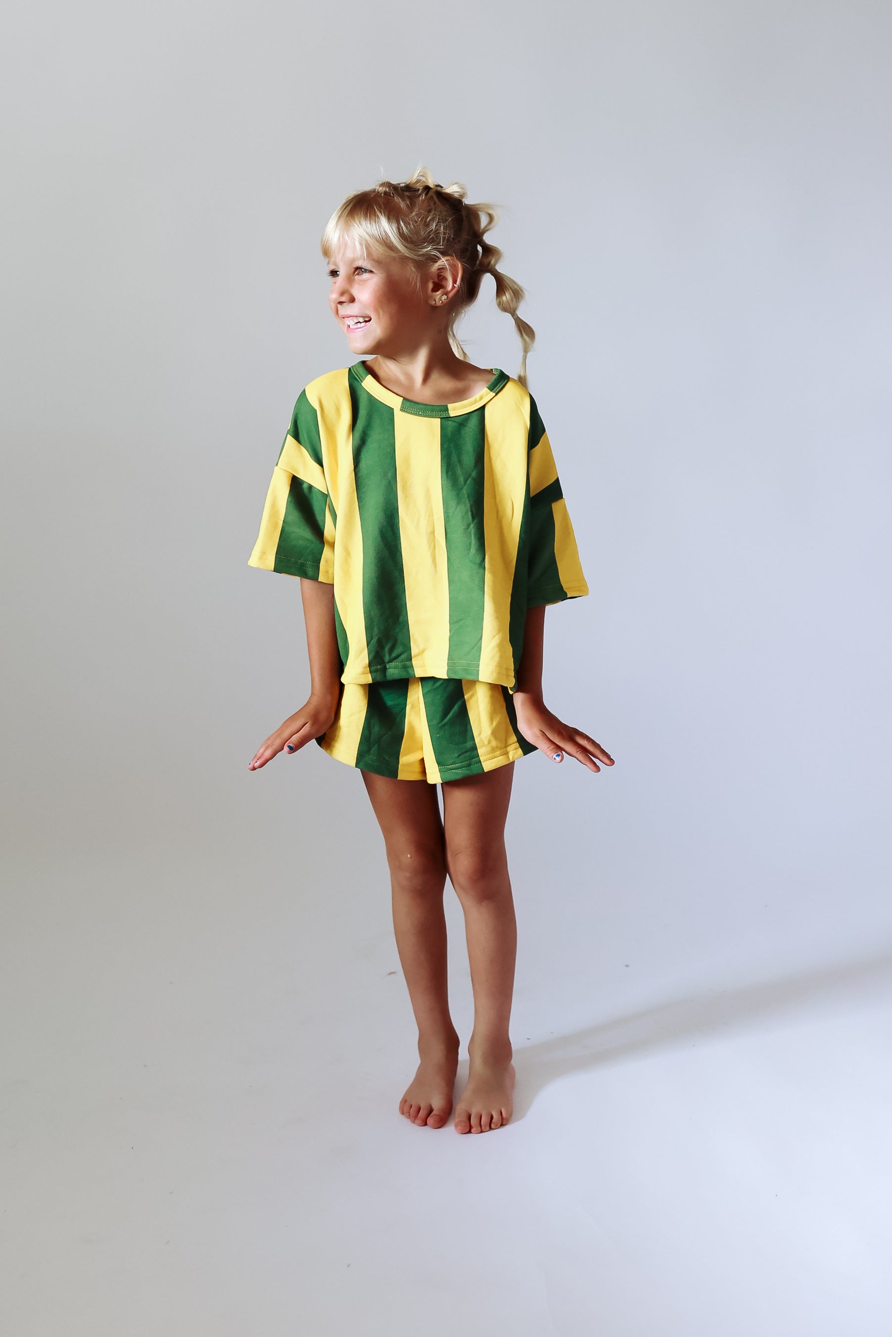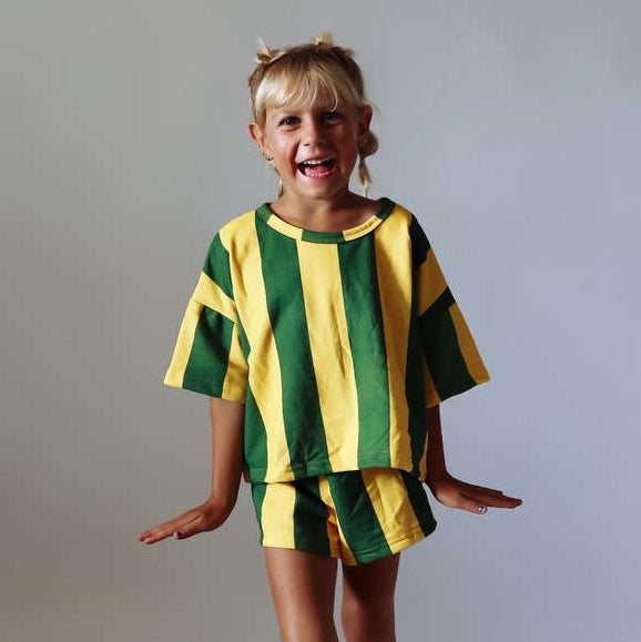 Our tee's are all hand designed by us to be of the highest quality! The cut, the fit, the color, the fabric, everything down to the stitching was chosen to be the very best for you and your littles.