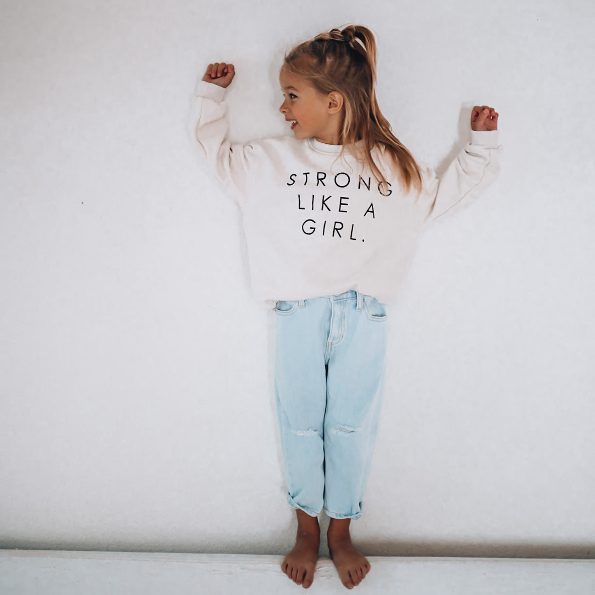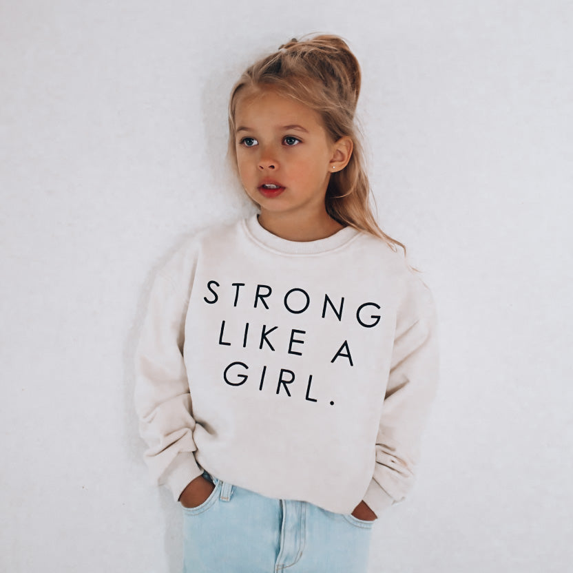 STRONG LIKE A GIRL pullover | in black |oversized drop shoulder | KIDS