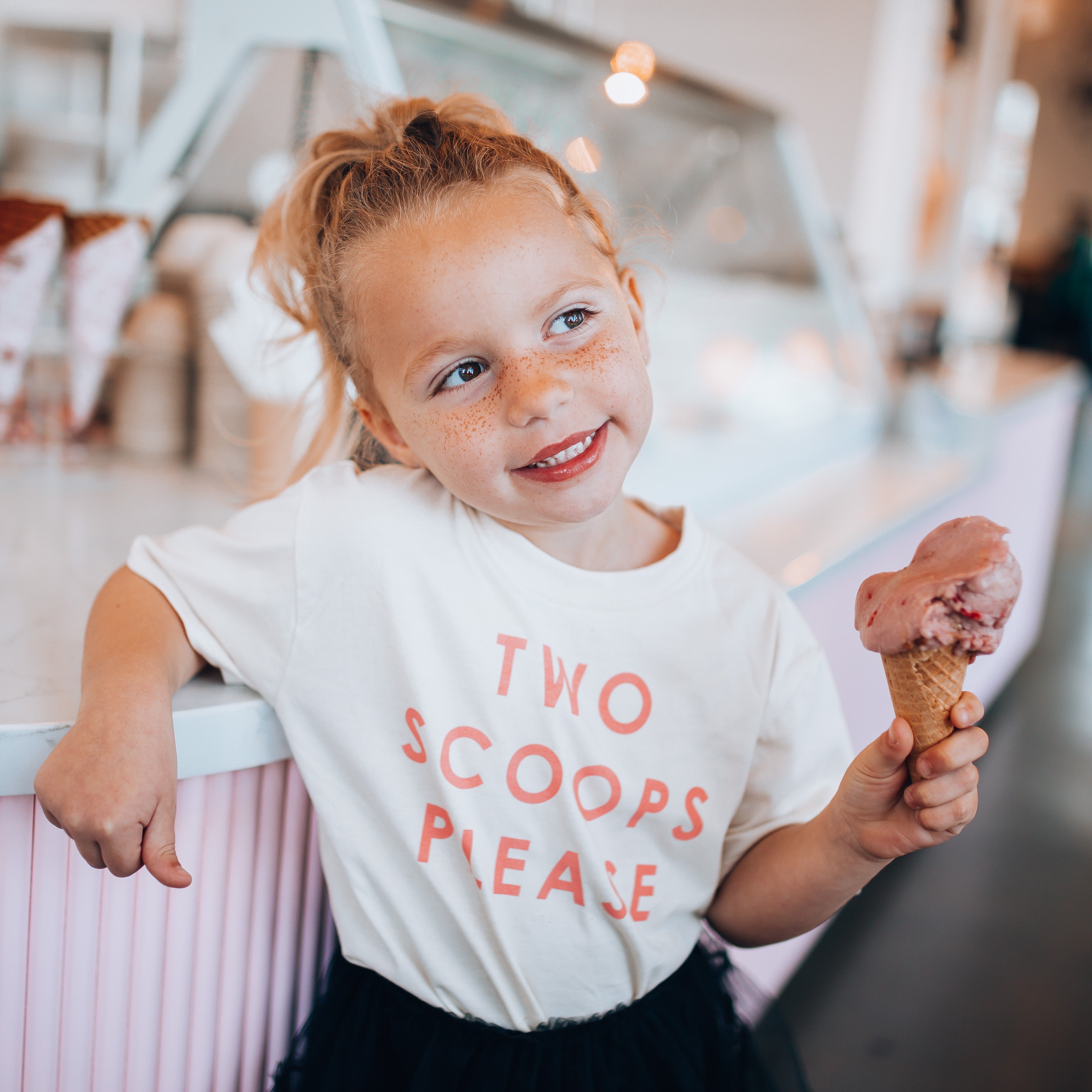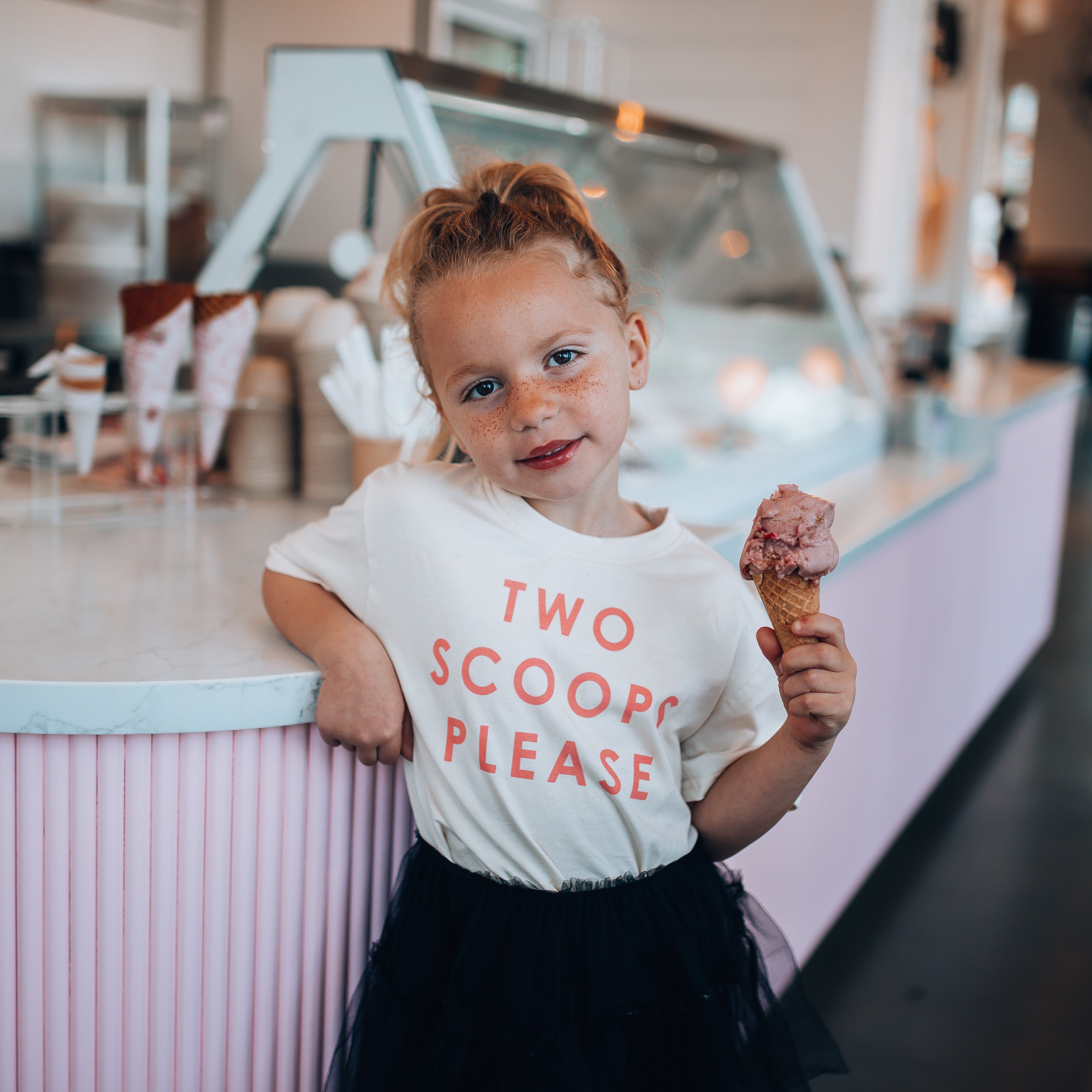 TWO SCOOPS PLEASE in peach | Kids Tee