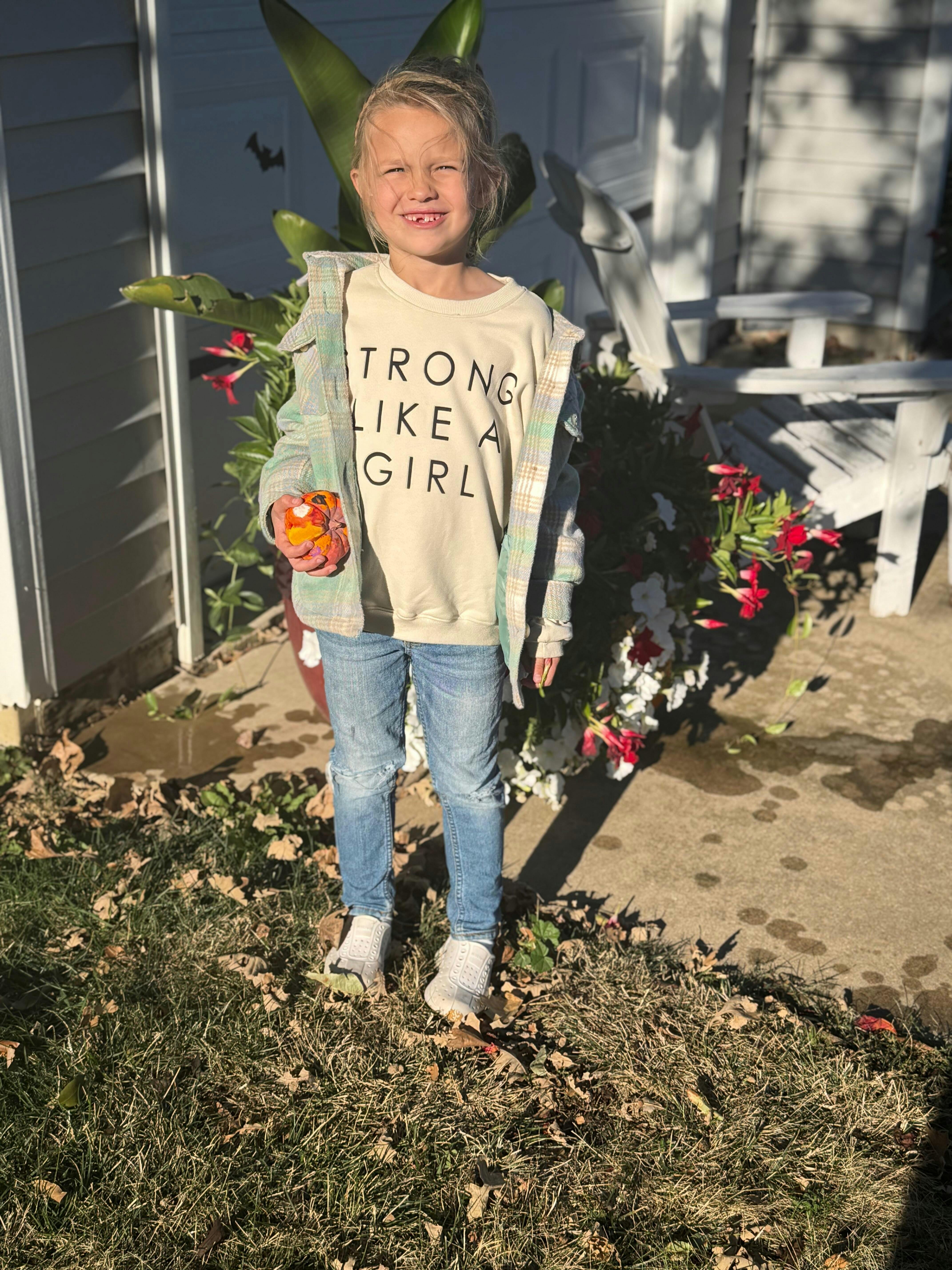 STRONG LIKE A GIRL pullover | in black |oversized drop shoulder | KIDS