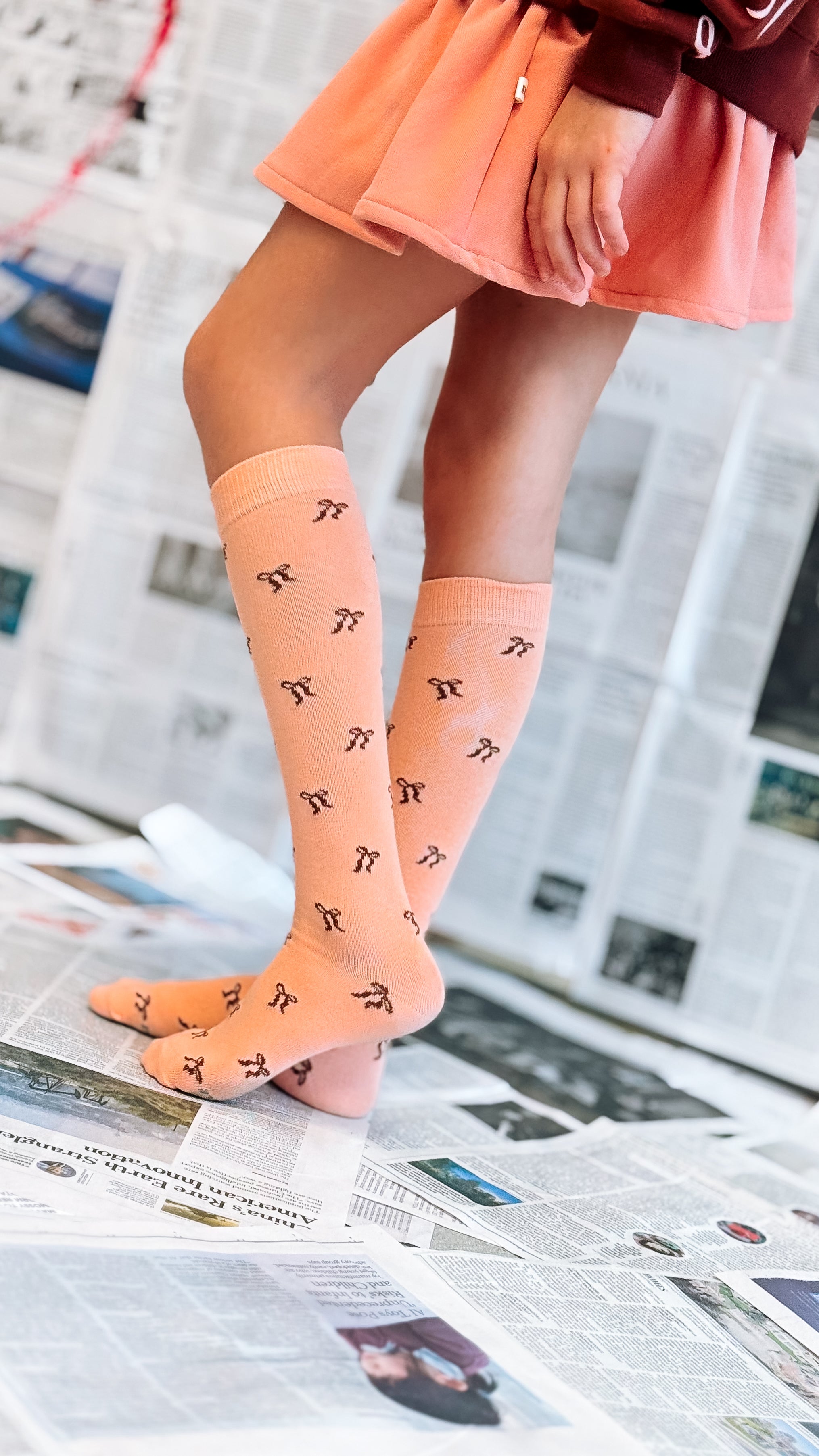 BOWS ALL OVER | IN BROWN | knee high socks