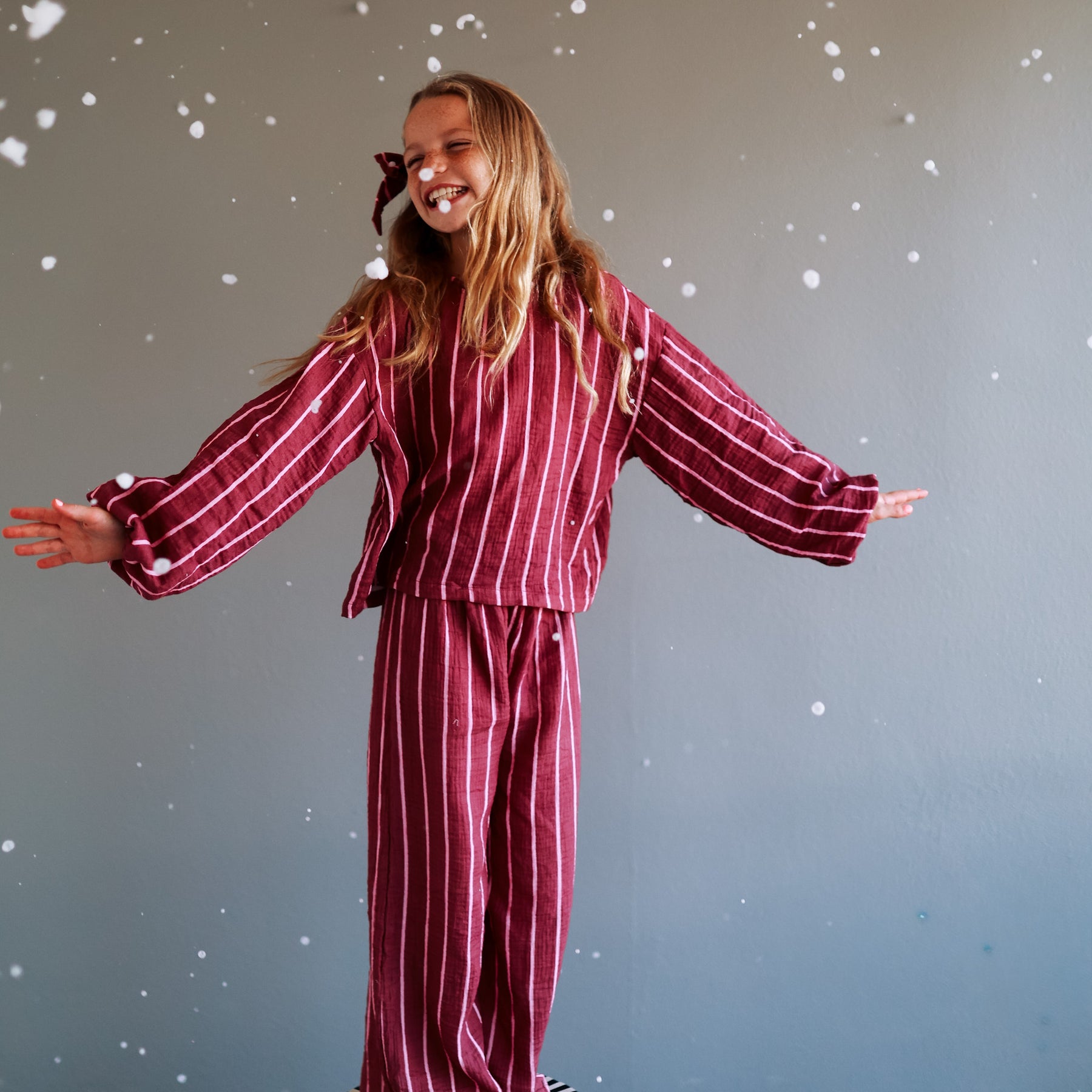 Made from a dreamy double gauze, these sets are designed to fit just right after the first wash, so they might look a bit big before washing.